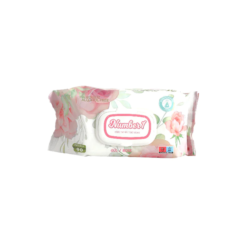 دستمال مرطوب نامبر وان سفيد گل رز بسته 90 عددی