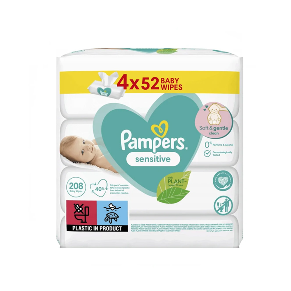 دستمال مرطوب پمپرز برای پوست های حساس بسته 4 عددی 52 برگی