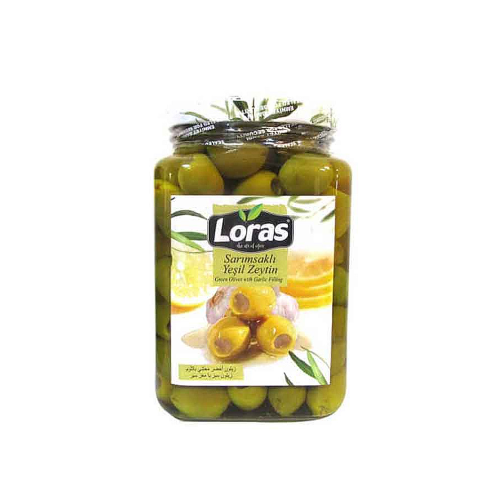 زیتون سبز با مغز لیمو Loras وزن 900 گرم
